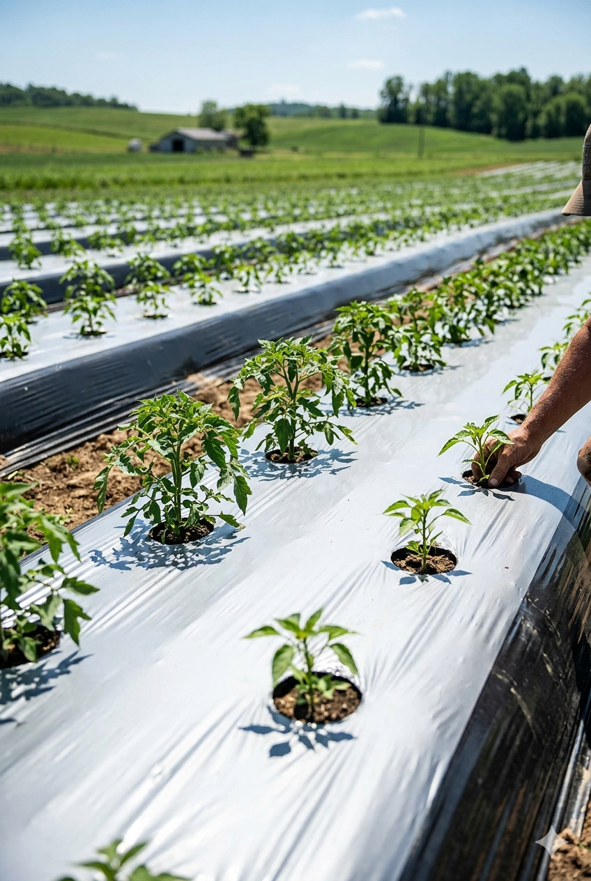 Silver-black mulch film is particularly useful because it reflects excess sunlight while protecting moisture inside the soil.