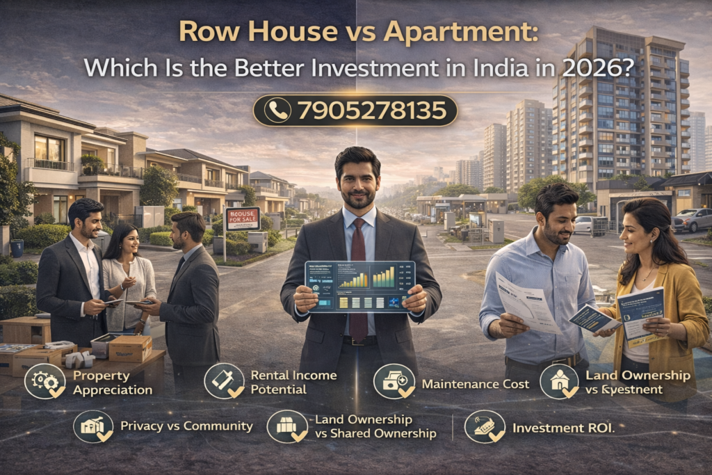 Here is the simple version: a row house and an apartment are both good options — but they are very different experiences of owning a home. This guide breaks down the differences simply so you can figure out which one matches what you actually want.